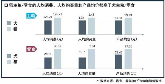 猫奴势起,剁手更多更频,猫主粮和猫零食的人均消费额、人均购买量和产品均价都高于犬主粮和犬零食,可见,“富养猫”不无道理。